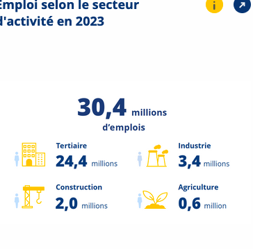 • le secteur tertiaire (services) occupe 80 % de la population active = 4 sur 5 employés